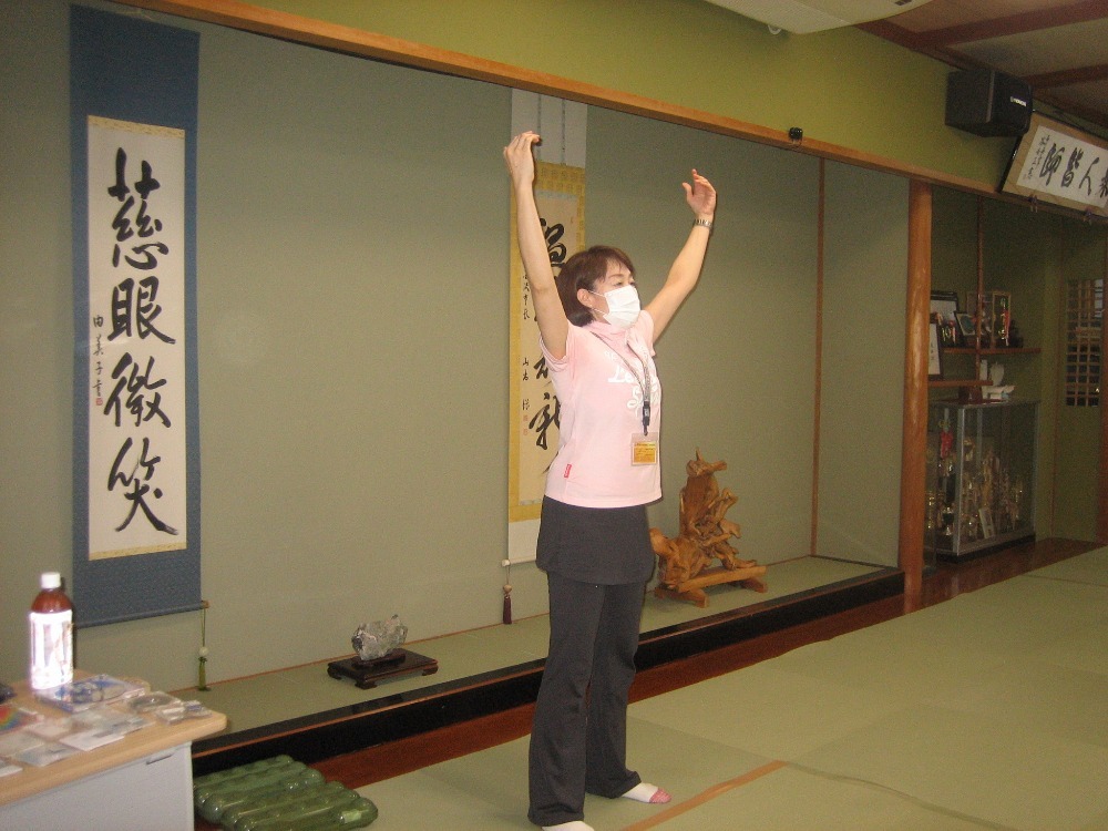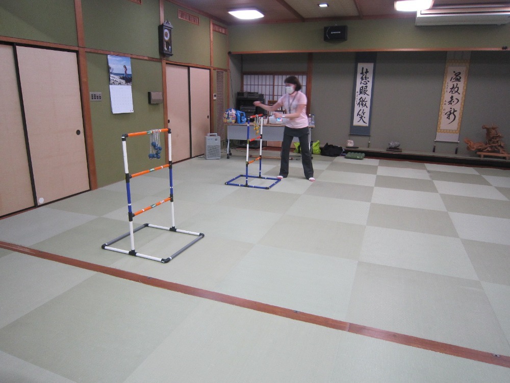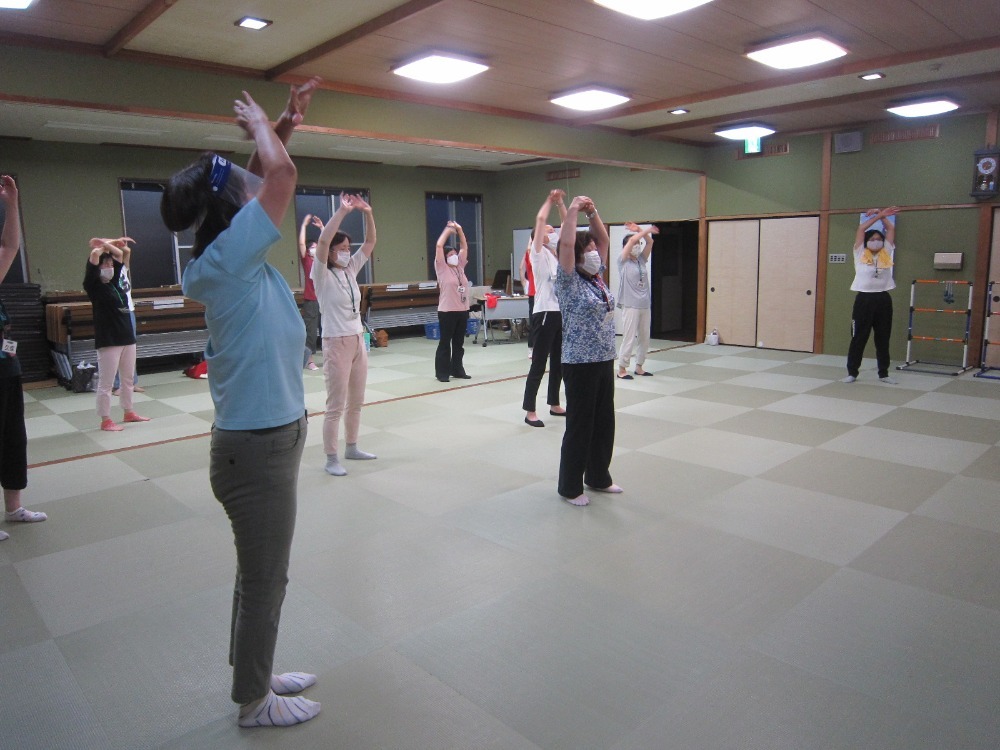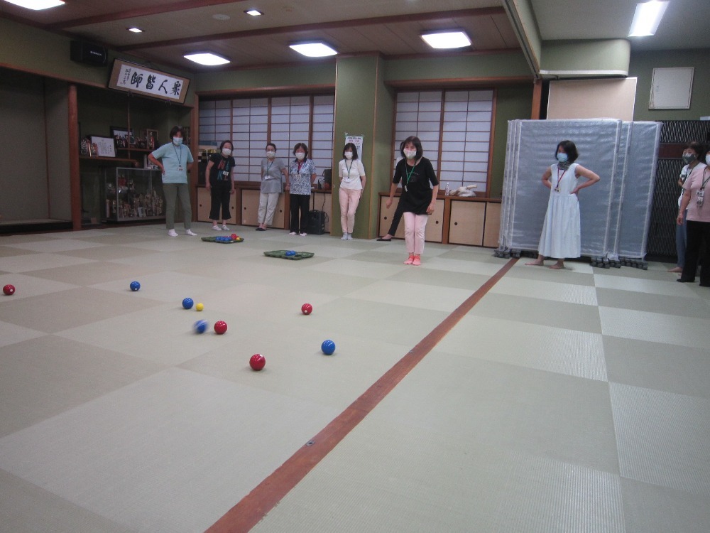 令和2年8月3日(月)第2回奴女性学級、健康わくわく出前講座が開かれました。石川県レクリエーション協会の方の指導のもと、リズムに乗って楽しく体を動かすことができました。 後半はニュースポーツのラダーゲッター、ペタンクを初めて体験しました。学級生一同ストレス発散になりました。